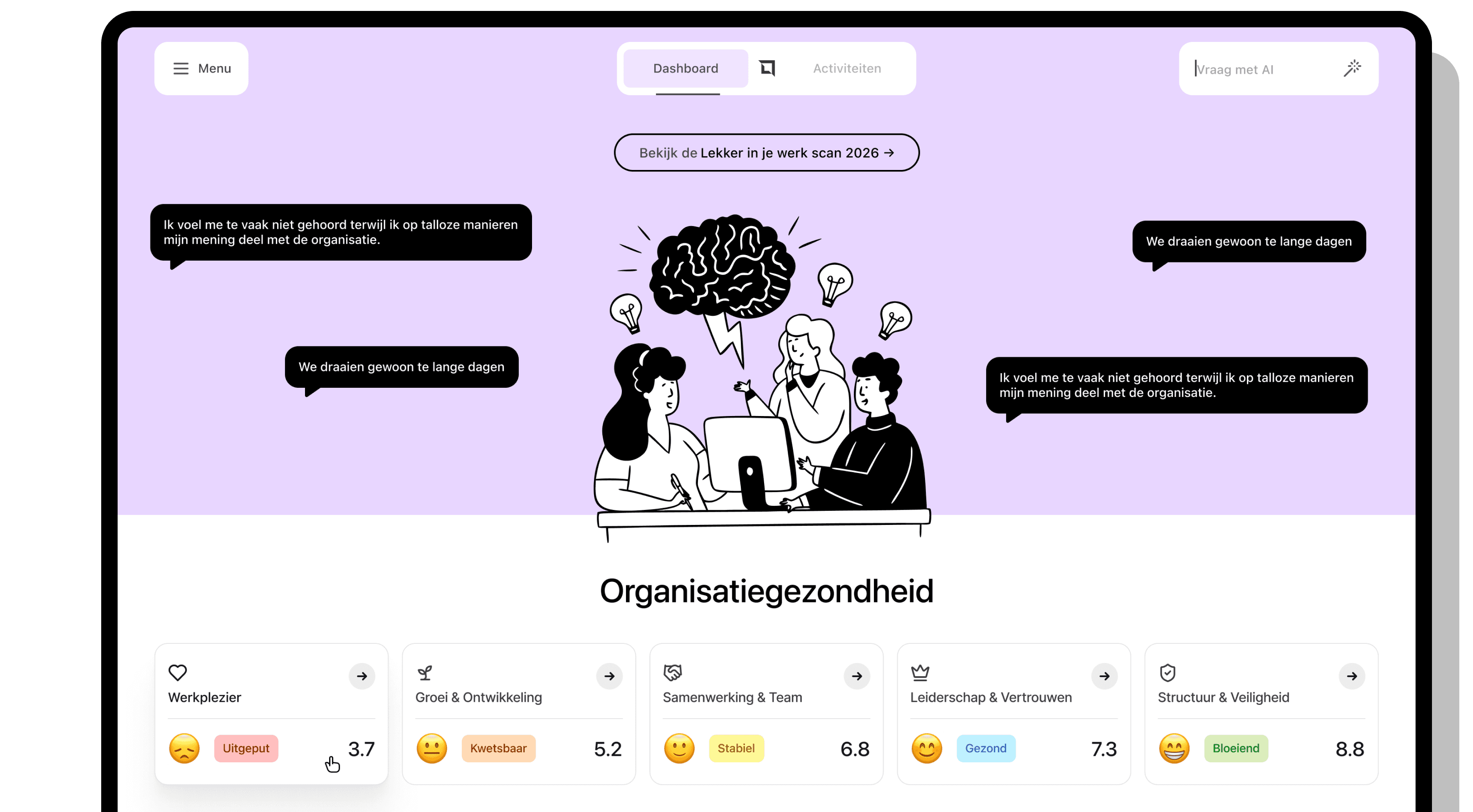 We brengen in kaart wat er leeft op de werkvloer en wat collega’s bezighoudt.